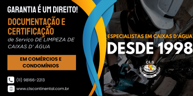 GARANTIA É UM DIREITO! Documentação e Certificação de Serviço DE LIMPEZA DE CAIXAS D’ÁGUA EM COMÉRCIOS E CONDOMÍNIOS